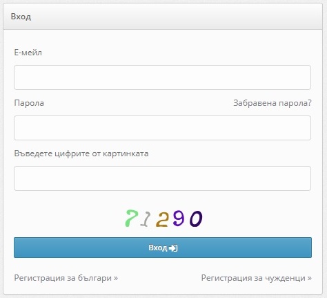 случай на забравена парола, можете да отправите заявка за нова парола натискайки