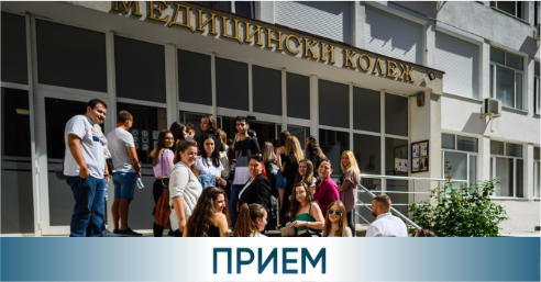 От днес, 07 юли 2021 г. продължава онлайн приемът на документи за специалностите „Здравен мениджмънт" и „Управление на здравните грижи" (ОКС „бакалавър"), „Логопедия", „Кинезитерапия", „Биомедицинска техника и технологии", „Медицинска сестра" и „Акушерка" (във Варна и филиалите в градовете Сливен, Шумен и Велико Търново), както и за специалностите от Медицинския колеж – „Медицински лаборант", „Помощник-фармацевт", „Инспектор по обществено здраве", „Медицински оптик", „Рехабилитатор", „Рентгенов лаборант" и „Медицински козметик". Вижте повече.