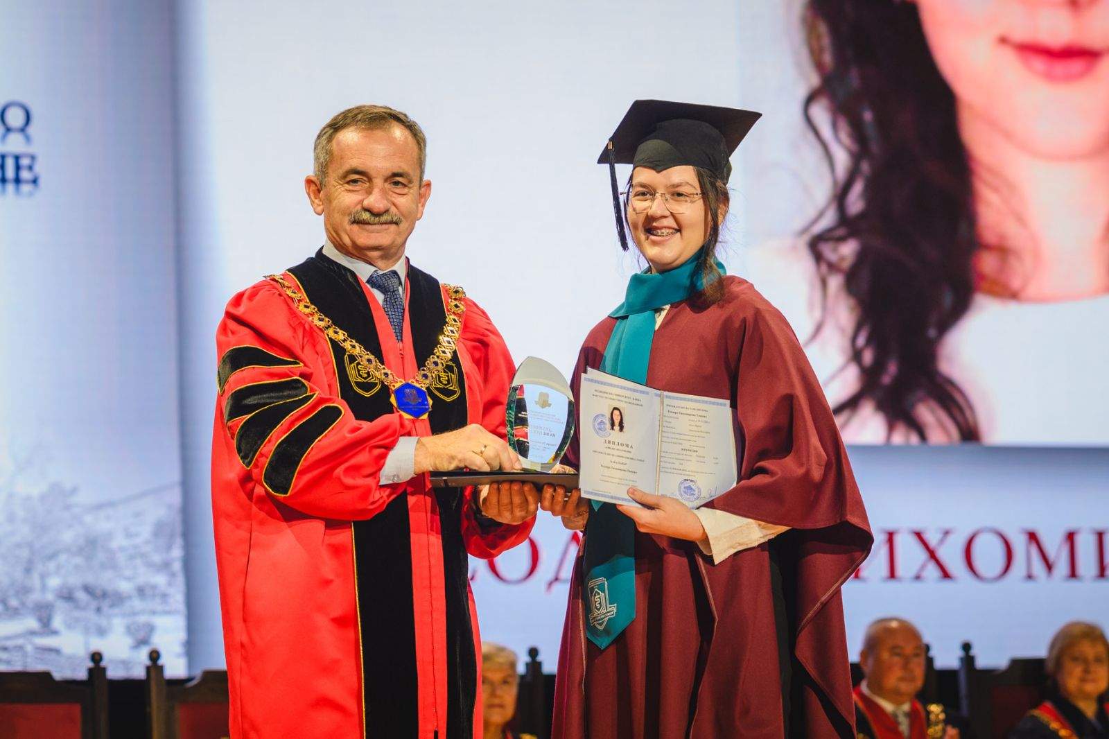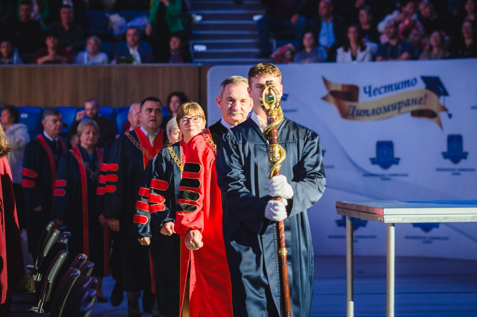 Тази година Випуск 2025 на Факултета по обществено здравеопазване се състои от бакалаври и магистри от общо 21 специалности. МУ-Варна дипломира първия випуск на програмата „Биомедицинска техника и технологии“, ОКС „бакалавър“, както и на магистърските специалности „Изкуствен интелект в биомедицината“, „Изкуствен интелект в здравеопазването“ и „Кинезитерапия“. От името на всички абсолвенти, с приветствие към академичното ръководство, преподавателите на МУ-Варна и към гостите на тържеството се обърна отличничката на випуска Теодора Ташева.
