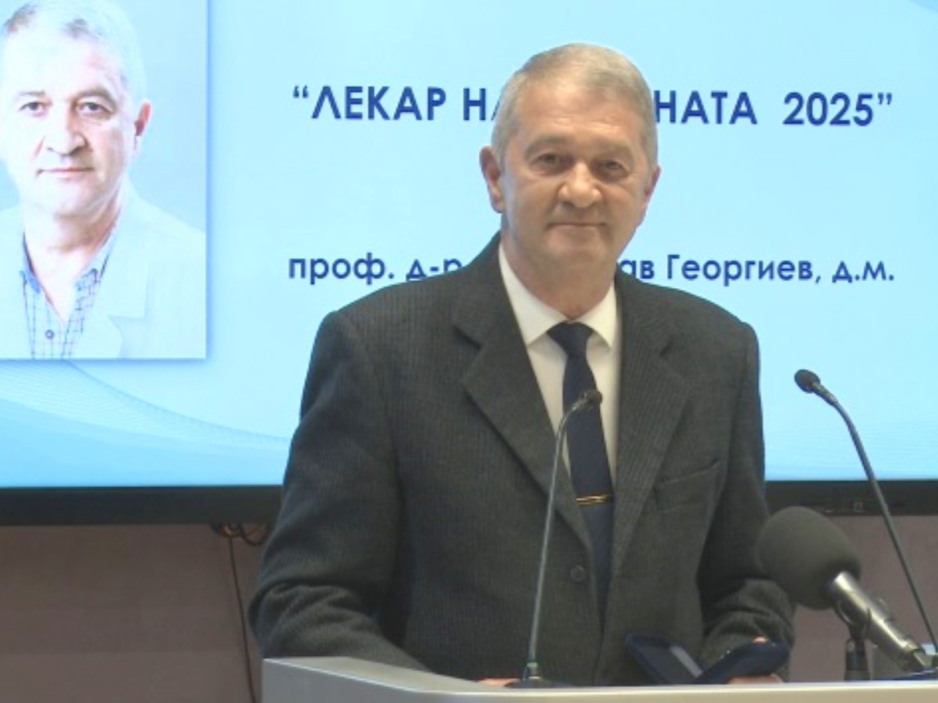 С най-високото отличие „Лекар на годината 2025“ за особени заслуги в сферата на здравеопазването за област Варна бе отличен проф. д-р Светослав Георгиев, д.м., ръководител на Направление „Кардиология“, Втора клиника по кардиология и Отделение по инвазивна кардиология към УМБАЛ „Св. Марина“ - Варна и ректор на МУ-Варна в в периода юни 2023 г. - март 2024 г. Проф. Георгиев е олицетворение на лекарската мисия - отдаден на пациентите, уважаван от колегите си и вдъхновяващ за студентите и младите лекари. Неговият принос далеч надхвърля индивидуалните му постижения - той е съзидател, който изгражда институции, развива медицината и утвърждава авторитета на българската медицина в международен мащаб, защото неговите професионален и морален пример олицетворяват най-висшите ценности на лекарското съсловие.