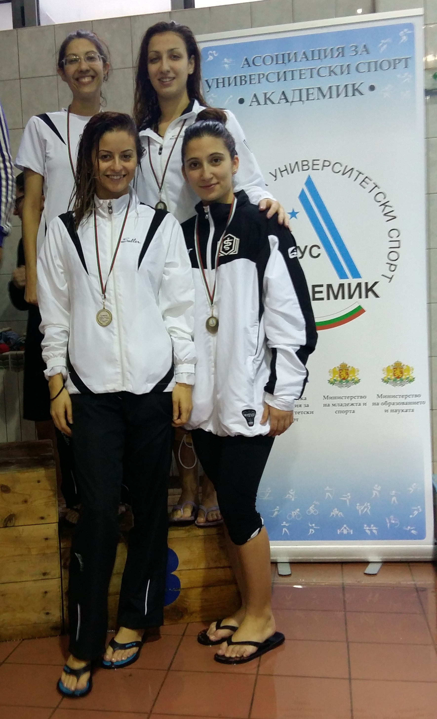 Представителната щафета на МУ-Варна в състав Антония Стоянова, Симона Борисова, Цветелина Кирязова и Велина Богданова взе участие в 4 по 50 м свободен стил, където зае почетното второ място на националния шампионат, а победата извоюваха представителките на Национална спортна академия. В съчетана щафета 4 по 50 м победител е отборът на НСА, второ място заеха момичетата от Пловдивски университет, а отборът на МУ-Варна се окичи с бронзовите медали.