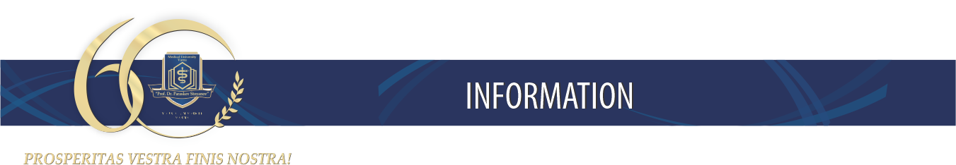 The training in Dental Medicine in English is full-time only and includes three stages (6 years): the course of study lasts five years (ten semesters), the pre-graduation practice after the 10th semester (135 working days or 1080 hours) and two training practices with 30 calendar days duration (each training covers 150 hours) after the sixth and the eighth semester.