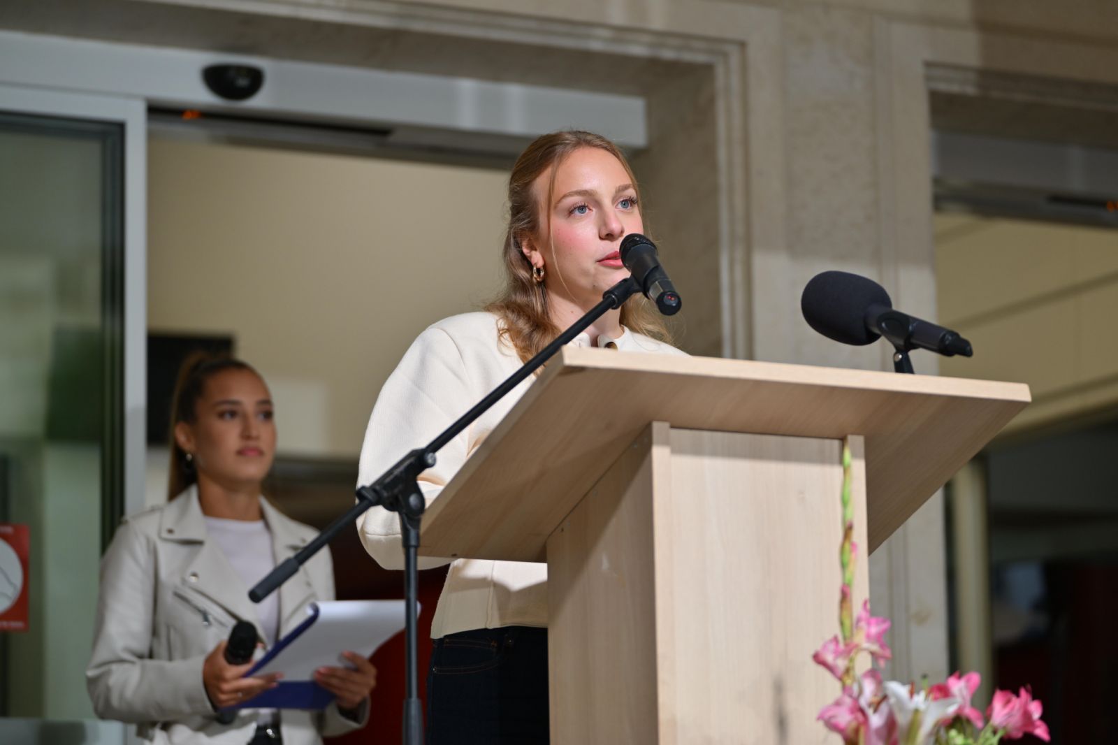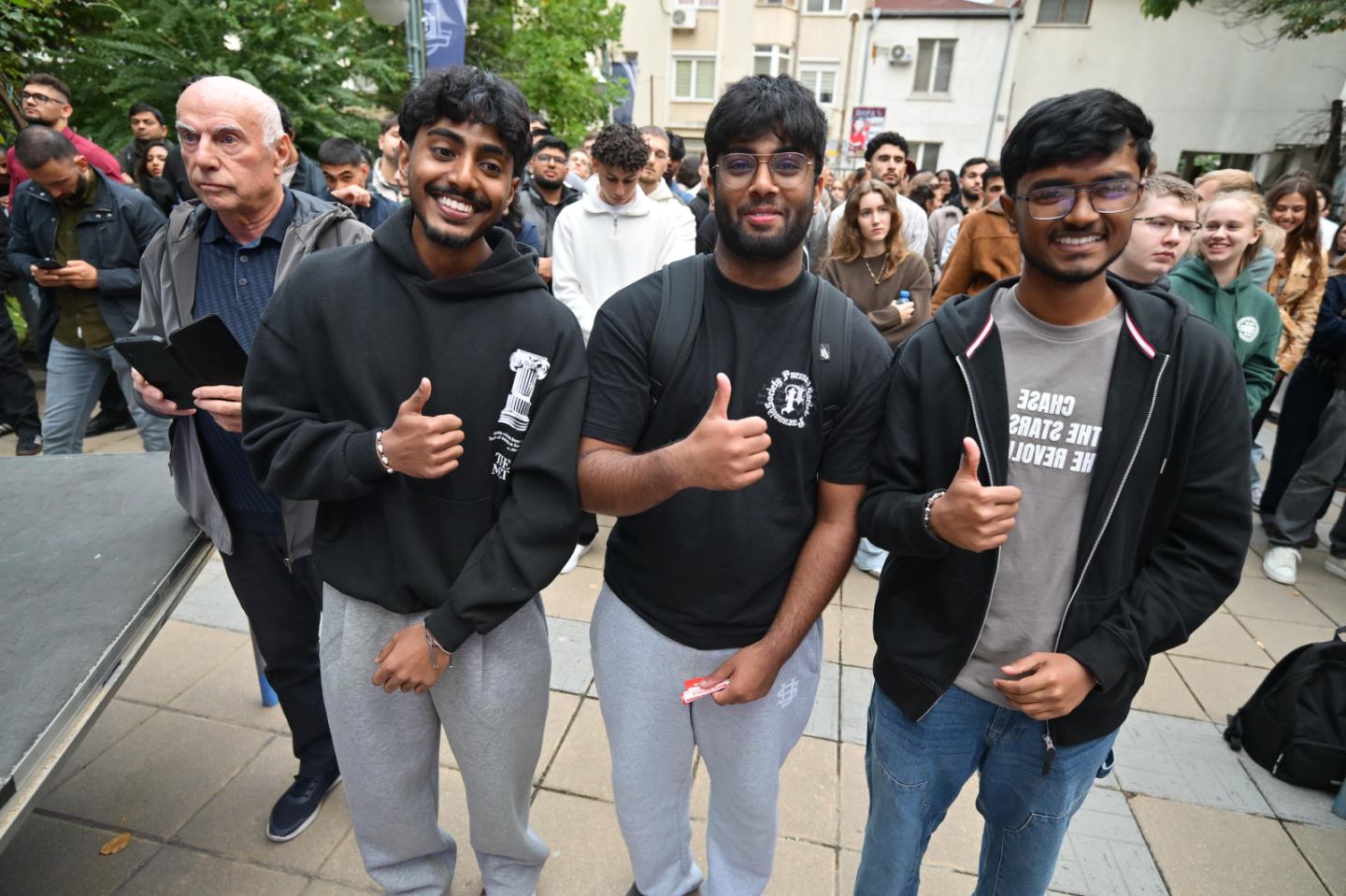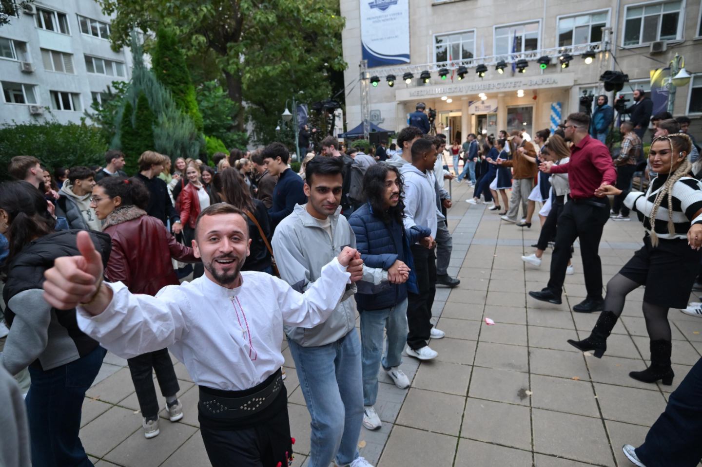 Martin Ivov and Monika Stanchev - first and third year students in the English–Language Training Programmes of MU-Varna, also joined the wishes for a successful new academic year. The singing talents of MU-Varna Victoriya Gadzhemova and Alan Paulson, the Student Indian Dance Group, consisting of Anriya Anand, Nimisha Reggie, Elaina Frayu and Niya Thomas, and the dancers from Diana Student Dance Ensemble were participants in the festive programme. Traditionally, the finale of the official opening was the Bulgarian Pravo Horo, which tempted lecturers and students to join the dance.